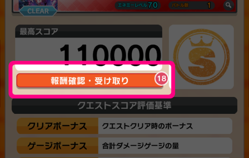 スコアアタック形式のクエストでは、バトル終了時の状況に応じてスコアが計算され、そのスコアによって報酬を獲得できます。