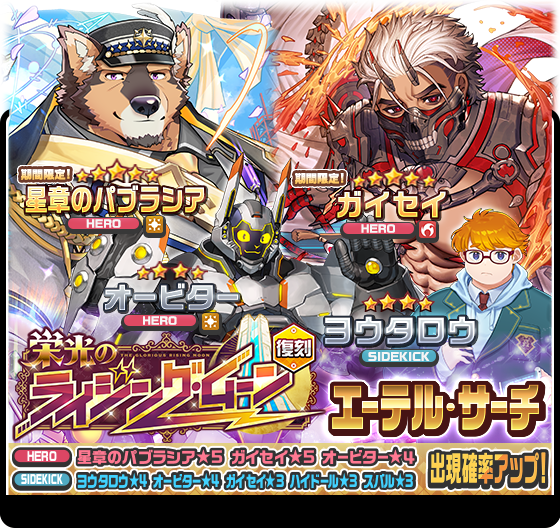 ※期間限定のヒーロー、サイドキックの各カードは本エーテル・サーチ終了後、通常のエーテル・サーチには追加されません。ご注意ください。