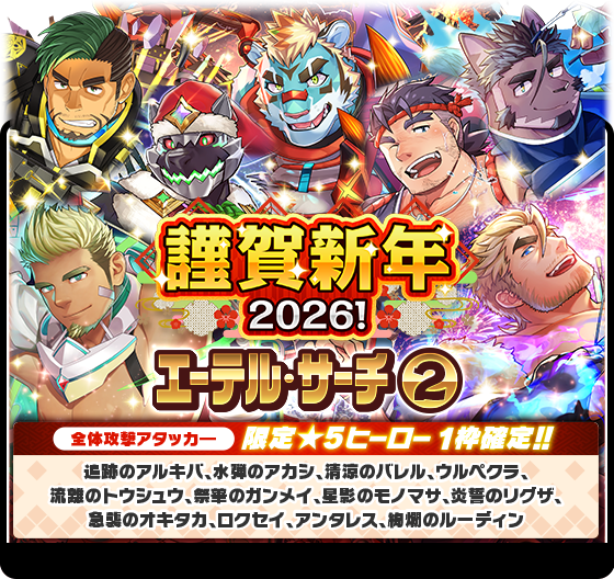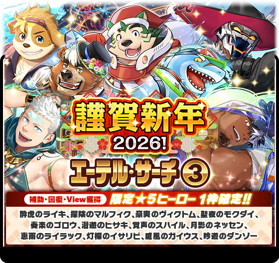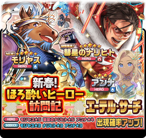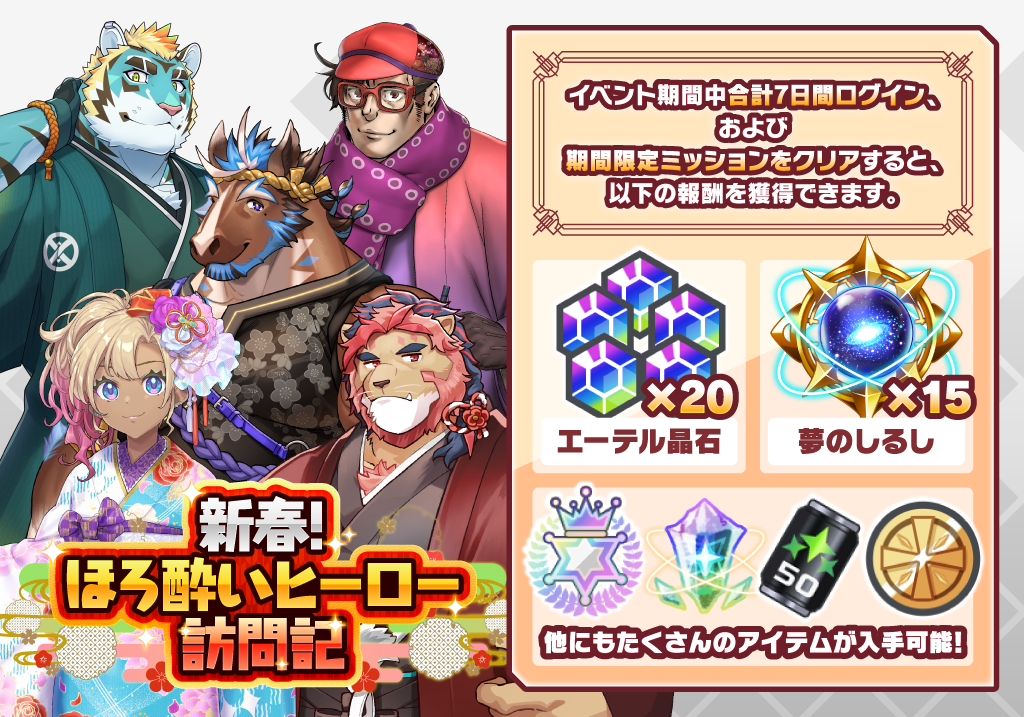期間限定イベント「新春!ほろ酔いヒーロー訪問記」に登場するキャラクターをピックアップした「新春!ほろ酔いヒーロー訪問記エーテル・サーチ」を開催いたします。