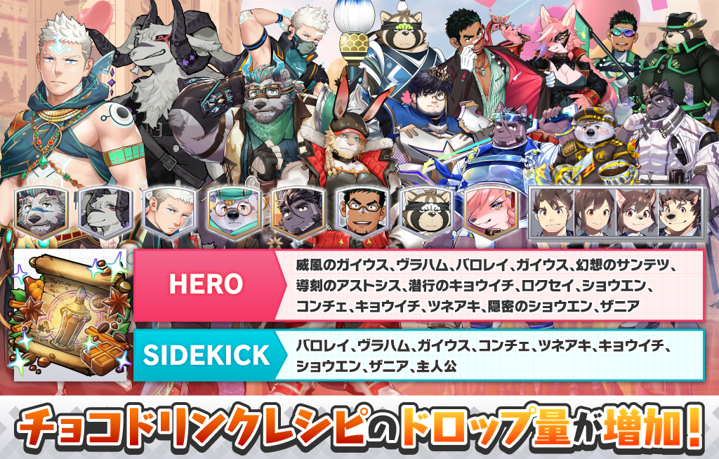 | チョコドリンクレシピ | ヒーロー | ★★★★★ | ガイウス | +20% |