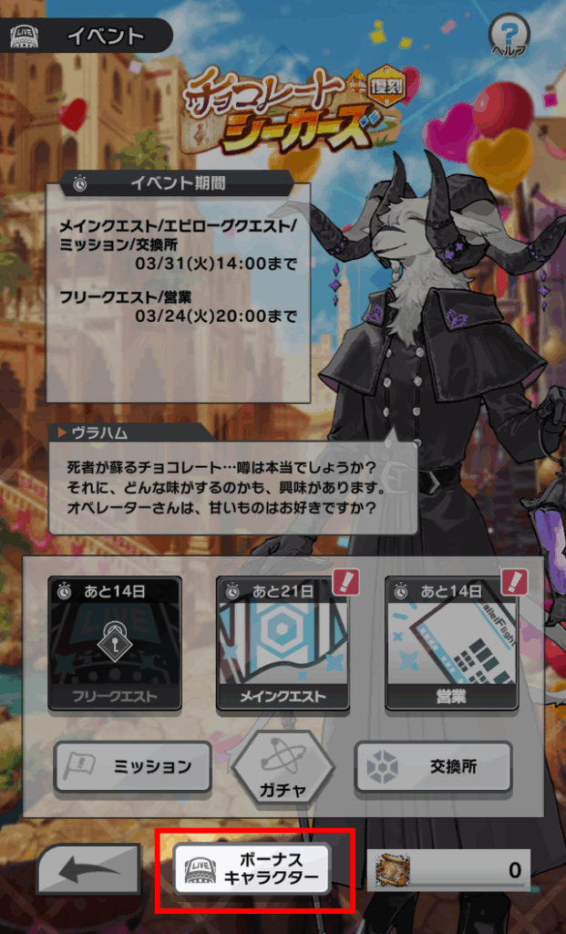 2026/03/10(火) 18:00~2026/03/31(火) 14:00の間、【期間限定イベント】「【復刻】チョコレート・シーカーズ」のエピローグクエストを期間限定で公開します。