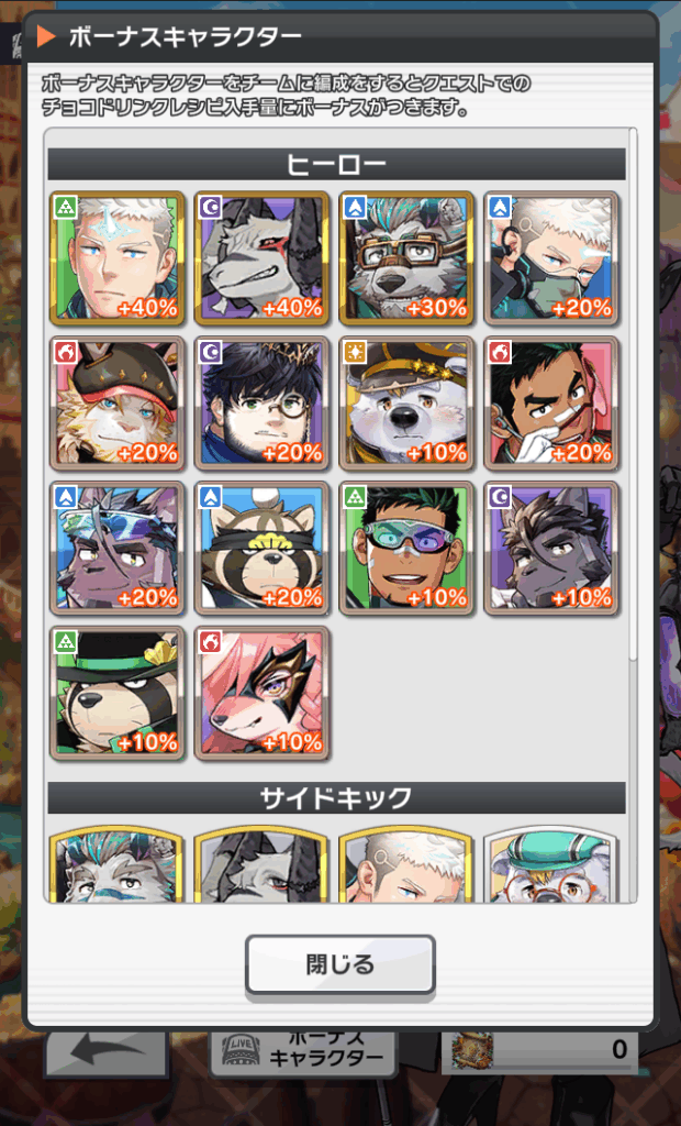 | チョコドリンクレシピ | ヒーロー | ★★★★★ | 幻想のサンテツ | +20% |