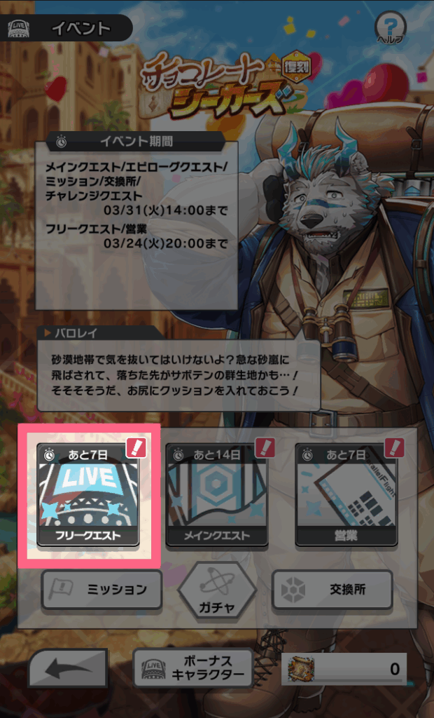 2. フリークエストや営業でイベントアイテムを集めよう!