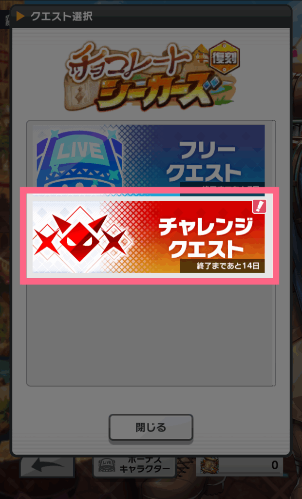 チャレンジクエストは、スタミナ消費0で何度でも挑戦できるクエストです。