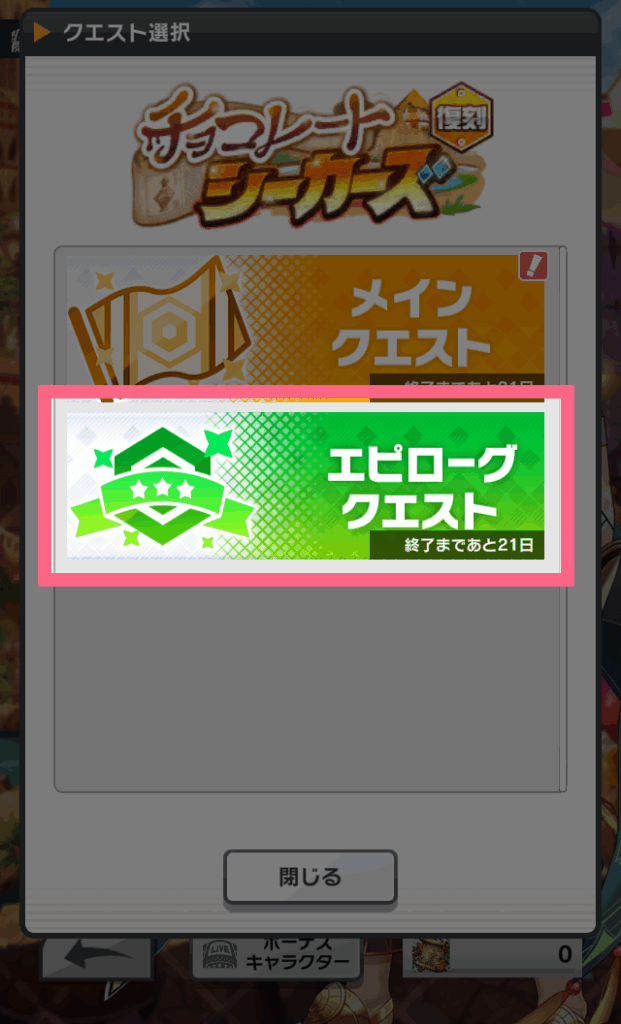 本イベントのチャレンジクエストは、イベントメインクエストをクリアすることで、対応する話数のチャレンジクエストがプレイできるようになります。