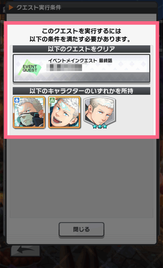 例えば、特定のヒーロー・サイドキックを所持していることであったり、特定のクエストを既にクリアしていることなどが、実行条件として存在します。